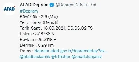 Son Dakika Denizli De Sabah Saatlerinde Korkutan Deprem Kandilli Rasathanesi Ve Afad Son Depremler Listesi 16 Eylul 2021 Son Dakika Spor Haberleri